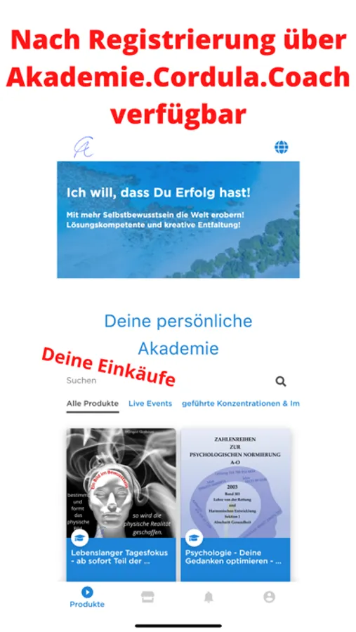 In dieser App bekommst Du Deine Zugänge zu Seminaren, Workinaren, Hörbüchern und der Masterclass von Cordula Ahrens.
