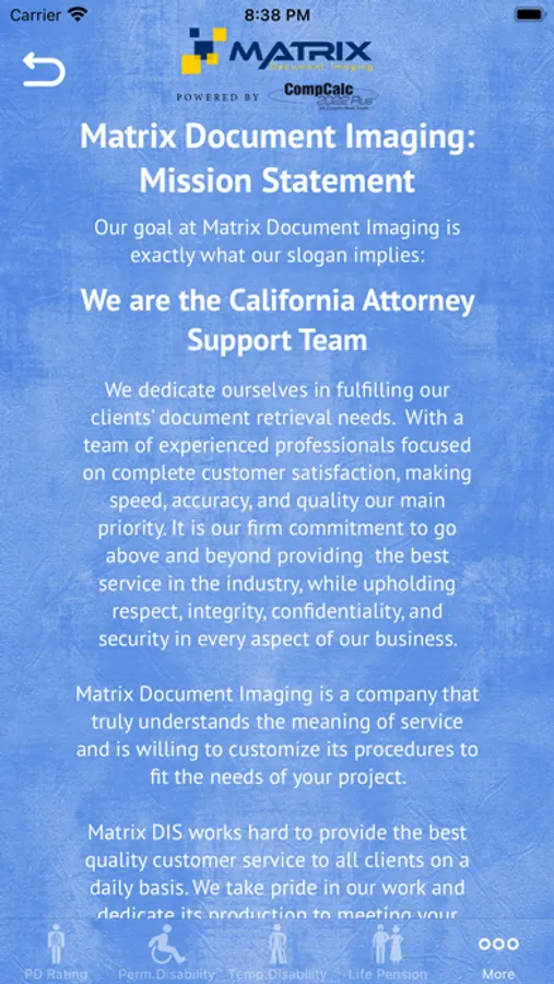 All Users of the MatrixCompCalc are instructed to consult the specific provisions of the California Labor Code and/or the DEU to ensure the accuracy of the information provided. It is not the intent of this product to provide legal representation, or legal advise. The user of the MatrixCompCalc is encourage to retain legal counsel before using this product.