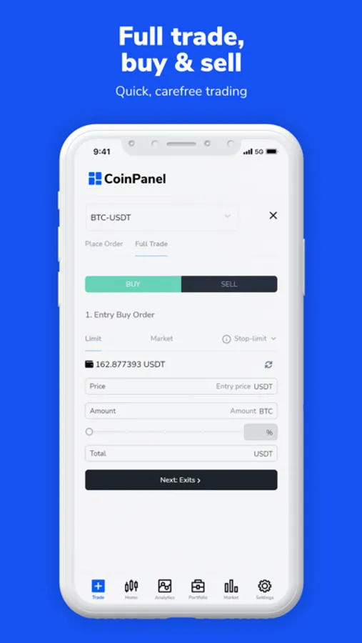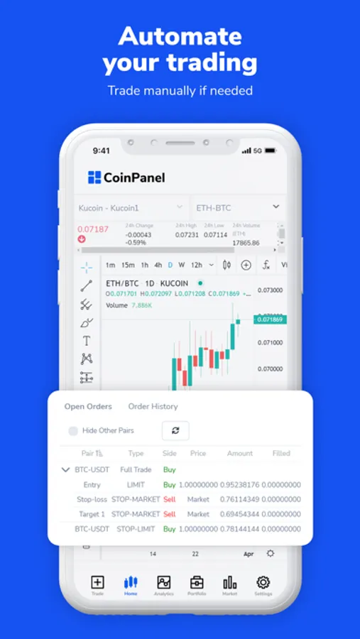 On one unified platform, CoinPanel allows you to trade efficiently across multiple exchanges, view real-time analytics for your crypto trades, including profits and losses, and manage your crypto portfolio.