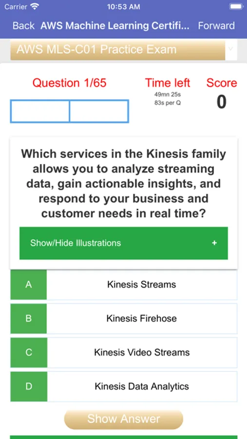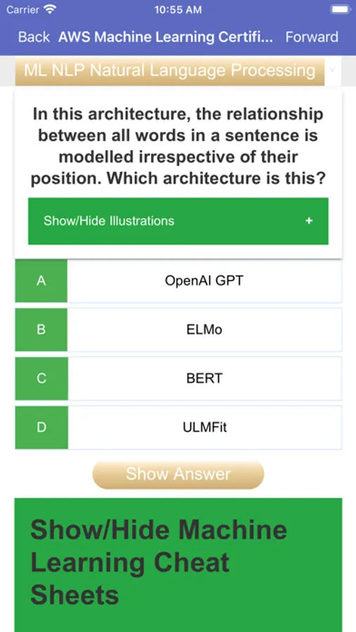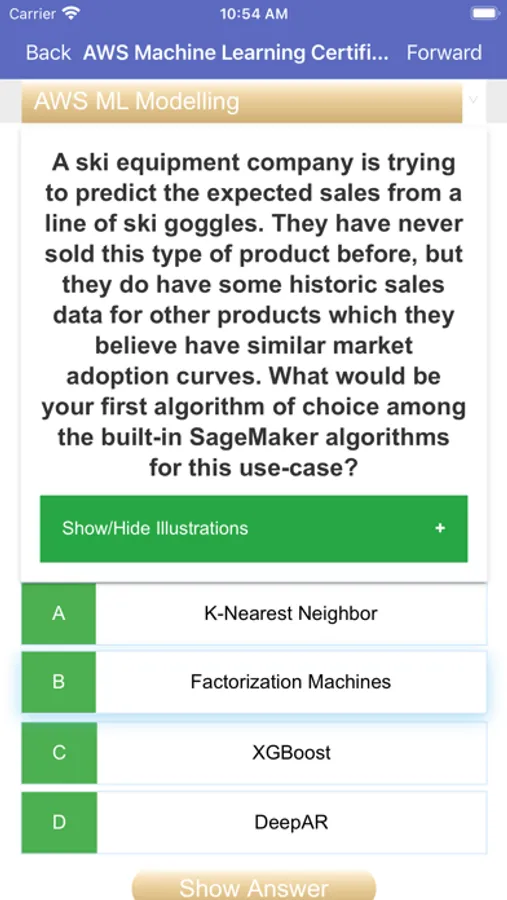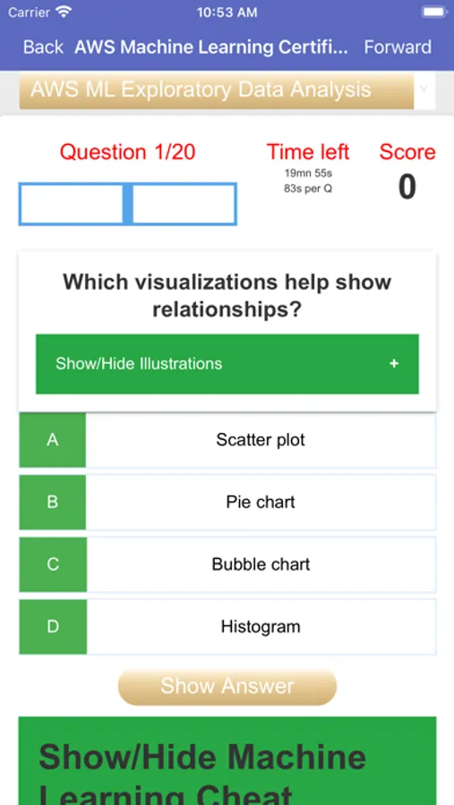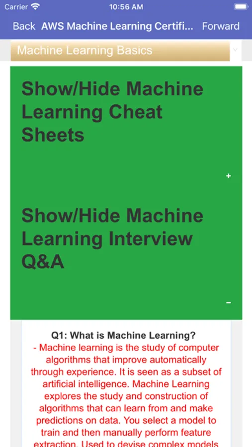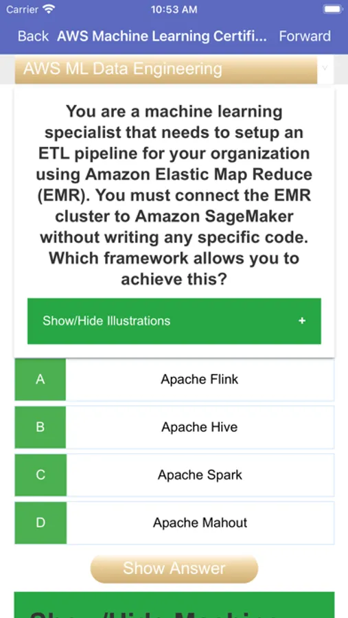 Use this App to learn about Machine Learning on AWS and prepare for the AWS Machine Learning Specialty Certification MLS-C01.