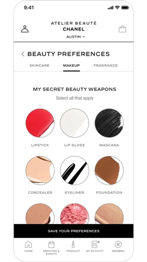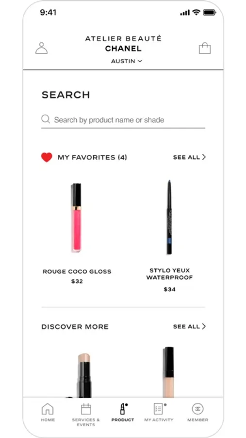 Browse products. Save your favorites. Book services and events with the Atelier Beauté CHANEL app.