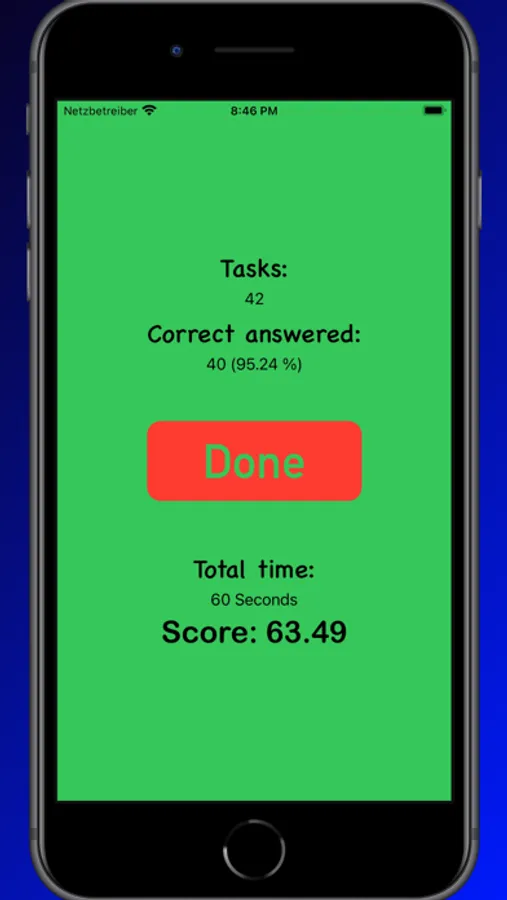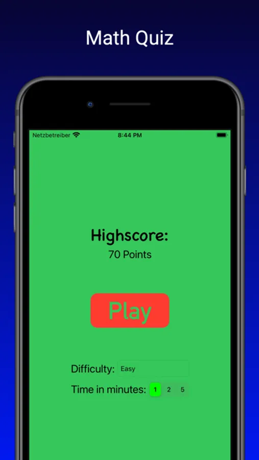 Train your ability to calculate simple and maybe even more complex calculations in everyday live, and maybe prevent grabbing the calculator the next time you have a simple math problem. It has 4 difficulty modes, so that basically everyone can find his level. From "Easy" to "Insane". Fill a 5-minute-break, or compete against a friend with Math Quiz | Game.