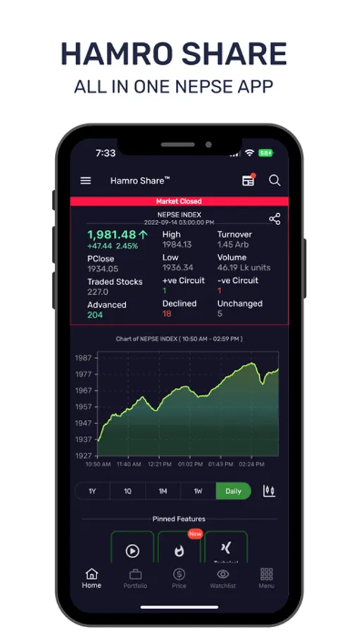 Hamro Share is the destination for mobile NEPSE users. On Hamro Share, the Stock market data is one click away. Whether you’re a beginner, an enthusiast, or a seasoned pro, there’s something for everyone on Hamro Share. All you have to do is tap, and view what you like, skip what you don’t, and you’ll find an endless stream of data. From your morning coffee to your afternoon errands, Hamro Share has the content guaranteed to make your day well not in the market crash :)