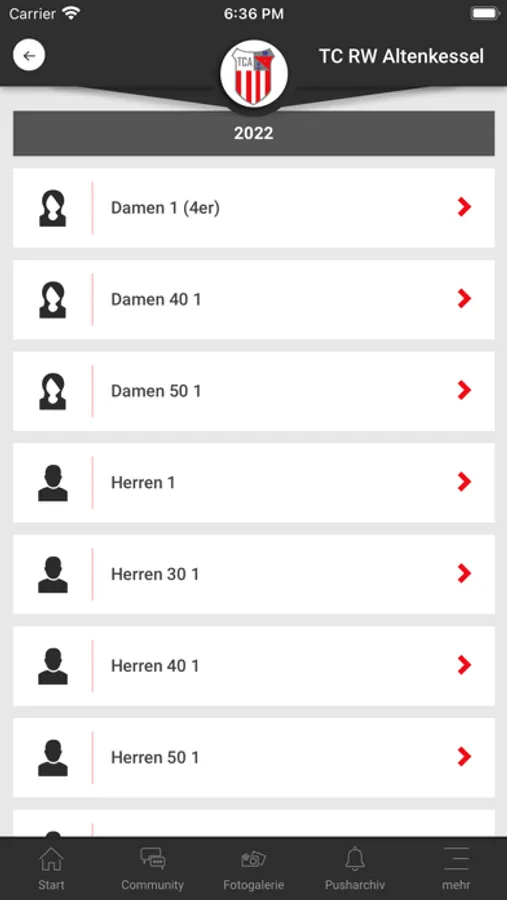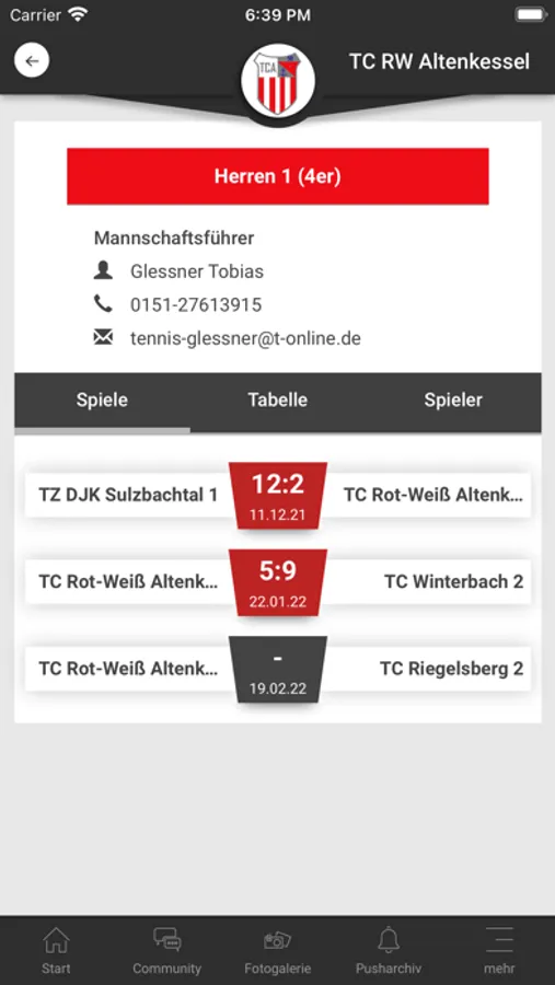 - Alle Mannschaften inkl. der Spieler und den Ergebnissen der Meisterschaftsspiele