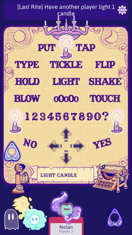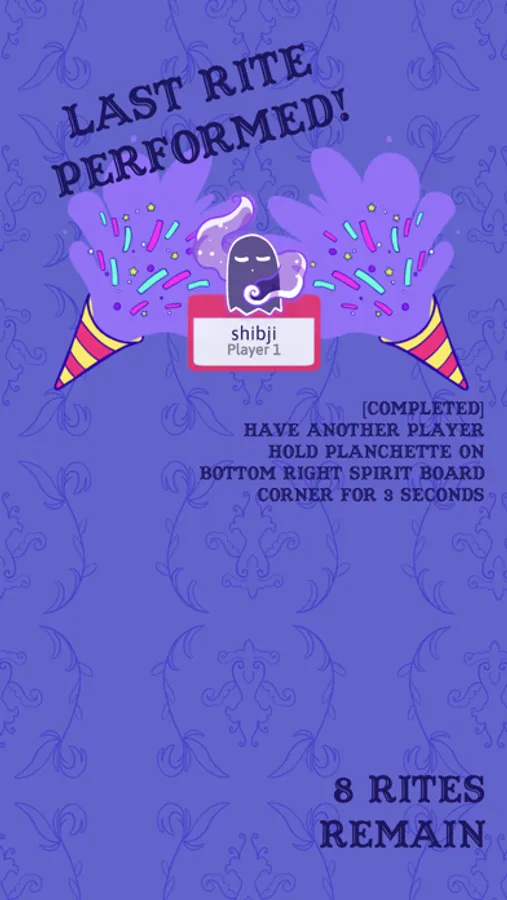 Silly Seance is a party game with hidden information. Played on a shared digital spirit board, players non-verbally communicate to complete each others’ secret last rites. Will you and your ghost friends succeed in deciphering enough last rites to be the afterlife of the party? Or will the purgatory last forevermore?
