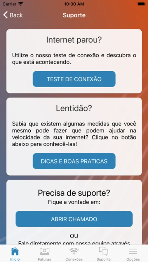O App é um canal que visa facilitar e otimizar o tempo do cliente, proporcionando o acesso rápido a informações como: