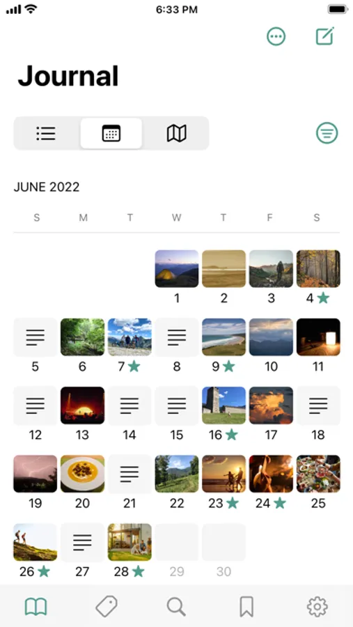 View your tags on a calendar. You will be able to see, for example, when you went for a run, when you met a certain person or when you were particularly happy.