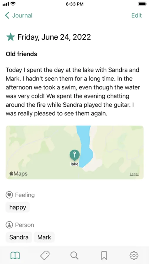 Set up a passcode and use Touch ID or Face ID to keep your journal safe from prying eyes.