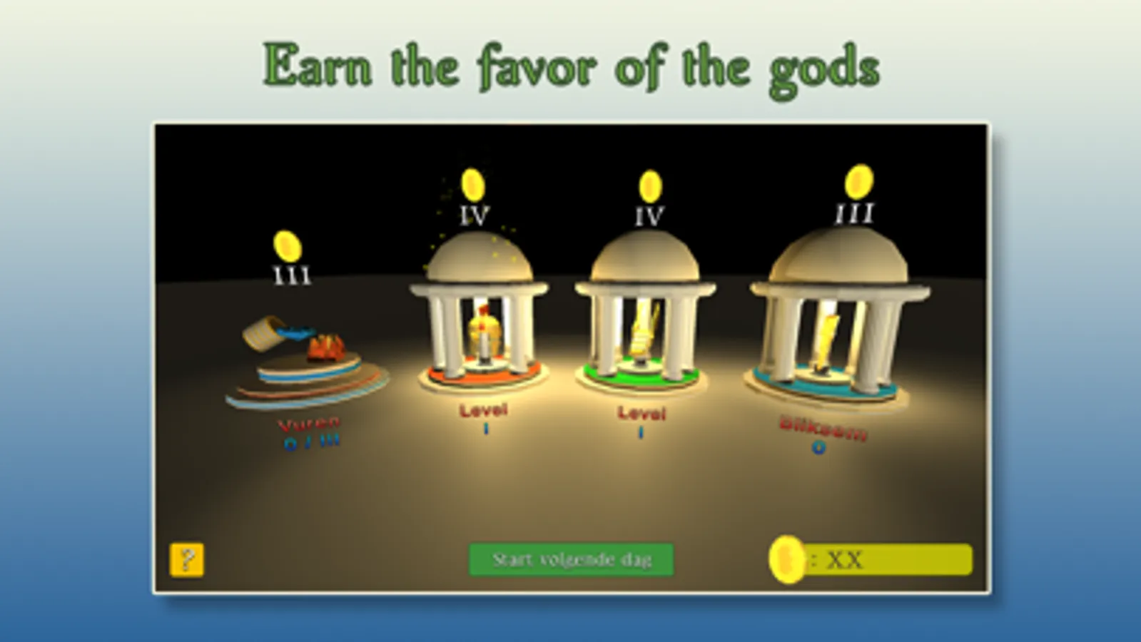 The game tasks you with defending Rome against advancing barbarians. However, these barbarians come "armed" with a Latin word. By selecting Roman soldiers of the correct inflection you can defeat the barbarians. If you send the wrong legionnaire to a barbarian, your soldier will lose. Barbarians who reach the city will set Rome on fire. If you're not careful, Rome will burn down and you'll lose the game. By defeating barbarians you earn pecunia. By offering this to the gods in the temples, you can improve your armies. Speed them up with the help of Mercury, train them faster with the help of Mars, or let Jupiter's lightning make short work of an advancing barbarian.