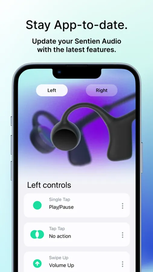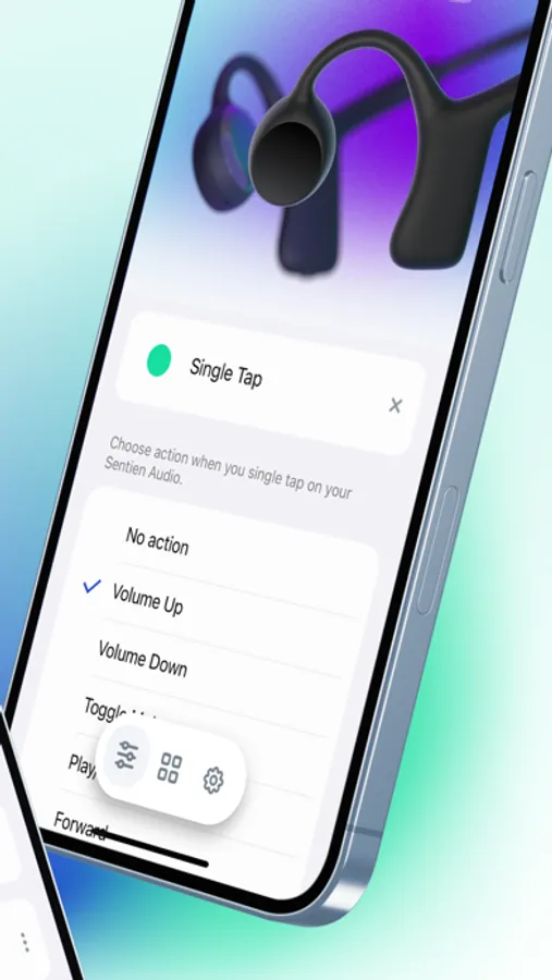 Customize up to twelve touch and gesture controls in the Sentien Connect app for your Sentien Audio headset.