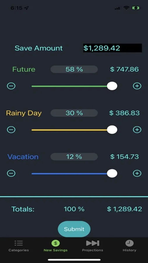 • The New Savings category sliders let you adjust where you allocate your money each time you add to your savings.