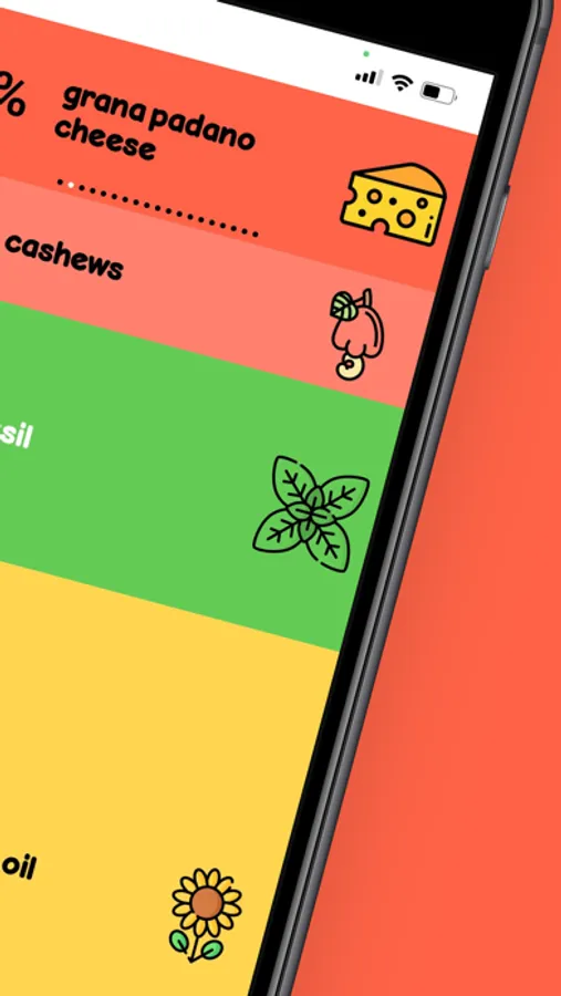 -main ingredient backgrounds are shown as the most dominant color of their respective icons
