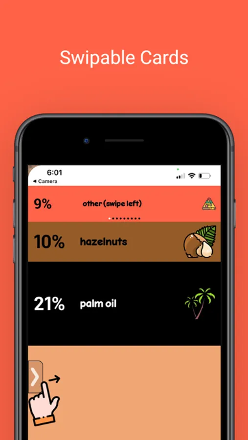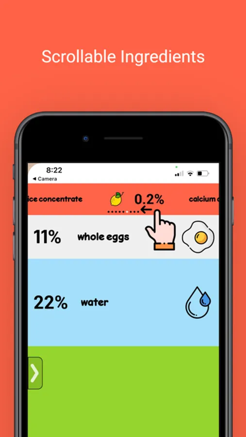 -ingredients making up more than 10% of a scanned item are categorized as main ingredients and displayed with a corresponding icon if one is available