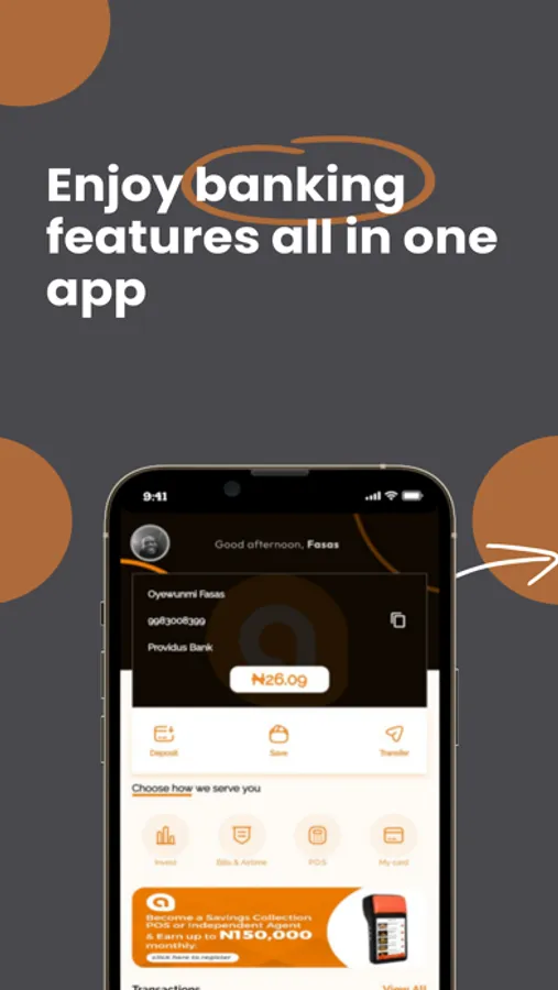 We offer full banking solutions which include. Mobile Banking, Bank Account Opening, Deposits, Investments, Savings, Loans, Bank to Bank Transfers, POS/Agency Banking.