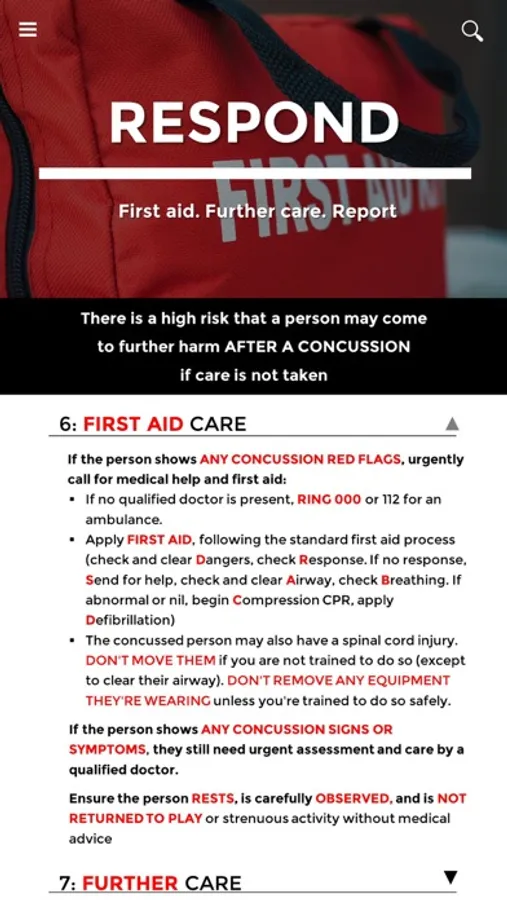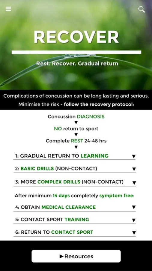 The app is based on the current recommendations of the Australian Medical Association, Australian Institute of Sport, Australian College of Sport and Exercise Physicians, and Sports Medicine Australia, and aims to improve concussion injury recognition and management so that long term complications and damage can be avoided.