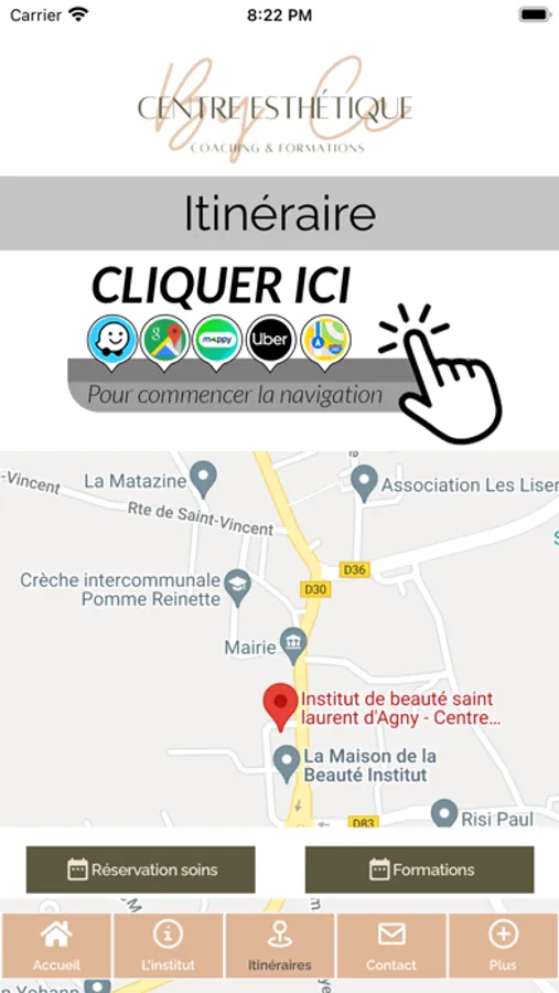 - Vous géolocaliser et vous rendre à l’institut grâce au GPS intégré