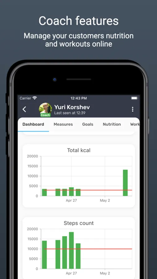 - Provide online escort services by accessing your clients nutrition diary and training log, as well as their activity data such as active calories, number of steps, distance, etc.