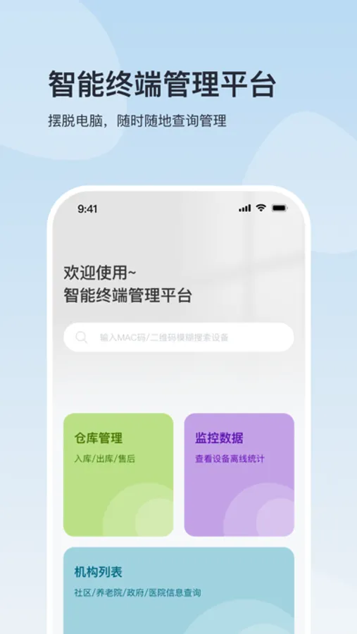 加护宝中台APP,是美捷威通生物科技有限公司打造的一款智能终端管理平台移动端,主要帮助公司内部员工便捷管理出入库、扫码查询设备、处理设备及售后管理等功能,提升办公效率。