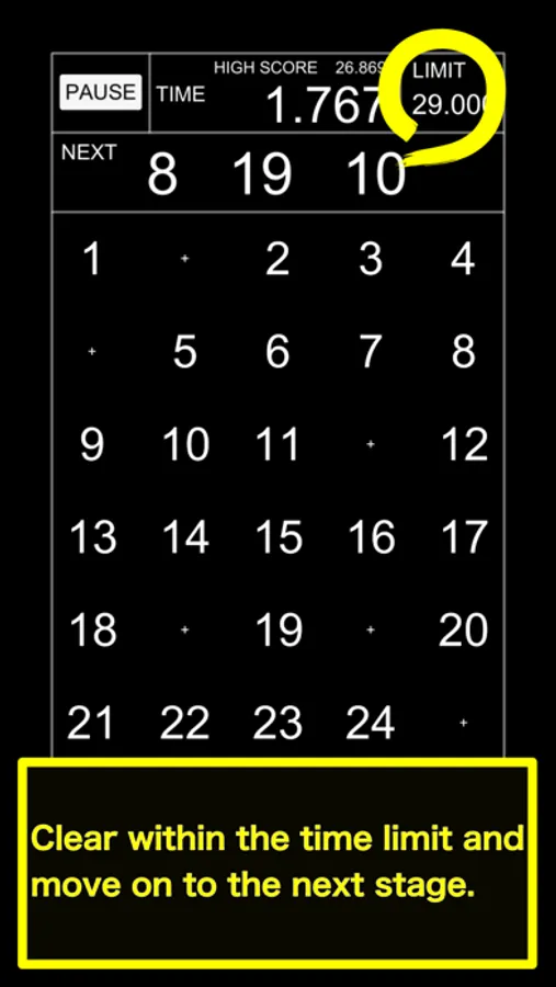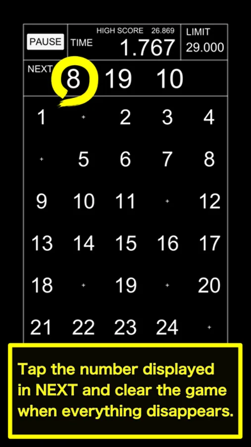 You can clear the game by tapping the number displayed in "NEXT" and erasing everything. It is a game that challenges how fast you can clear.