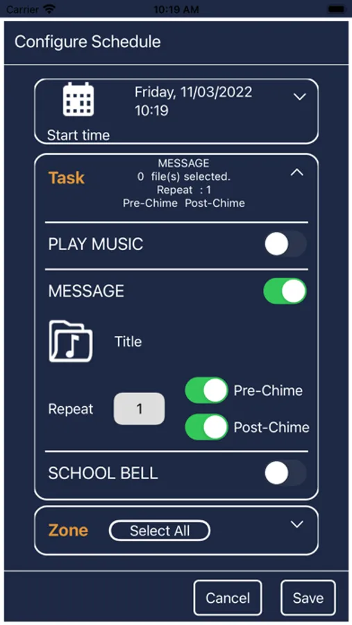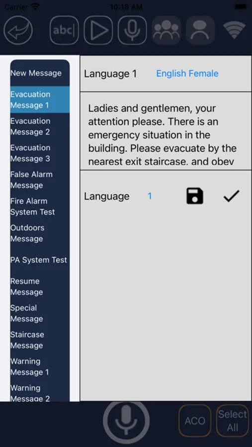 * Play pre-programmed audio notice or manual select audio notice to selected devices.