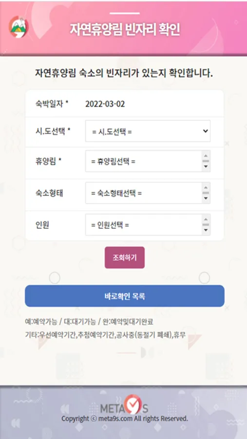 자연휴양림 통합 예약사이트인 "숲나들e"의