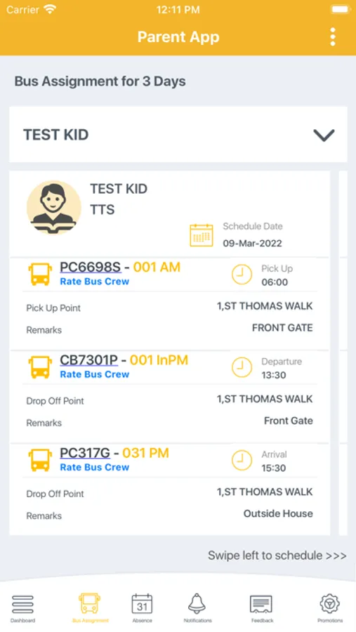 KAL Transport Parent App is a mobile application that closes the bridge between parents and operations of KAL Transport. Parents can track the children's Pick-Up and Drop-off time status, scheduled absence, receive notification from the app.