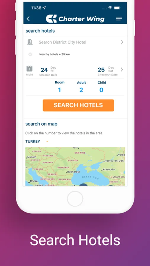 With Charter Wing, it is a fast and easy-to-use mobile travel application where you can buy the flight tickets, hotel, car rental and transfer products you need.