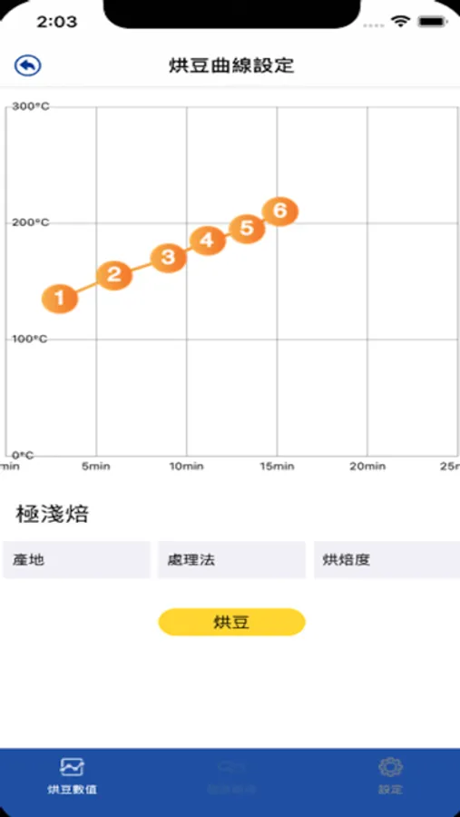 這是一個配合TOR -1 烘豆機使用的APP,你可以無線控制TOR-1 讓他烘焙豆子,並保存烘豆紀錄。