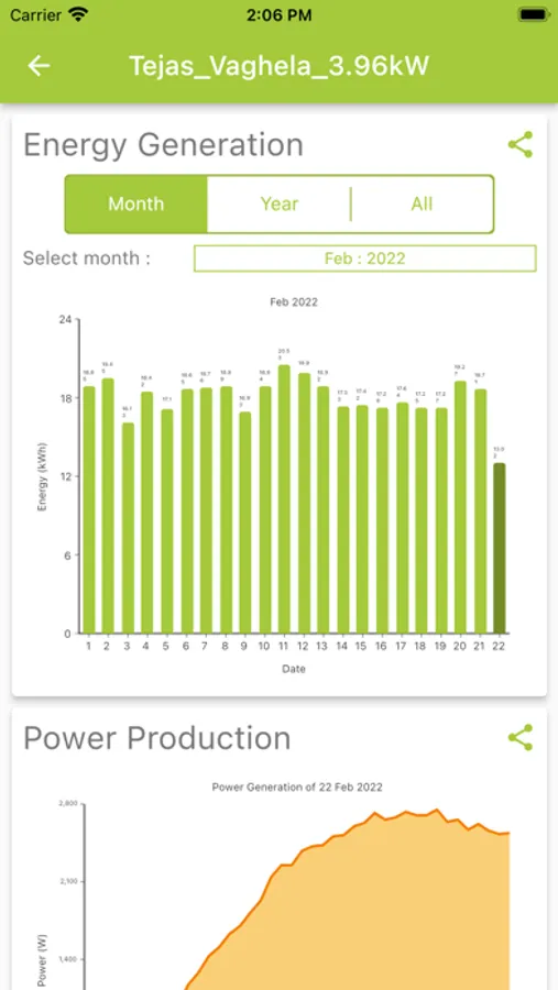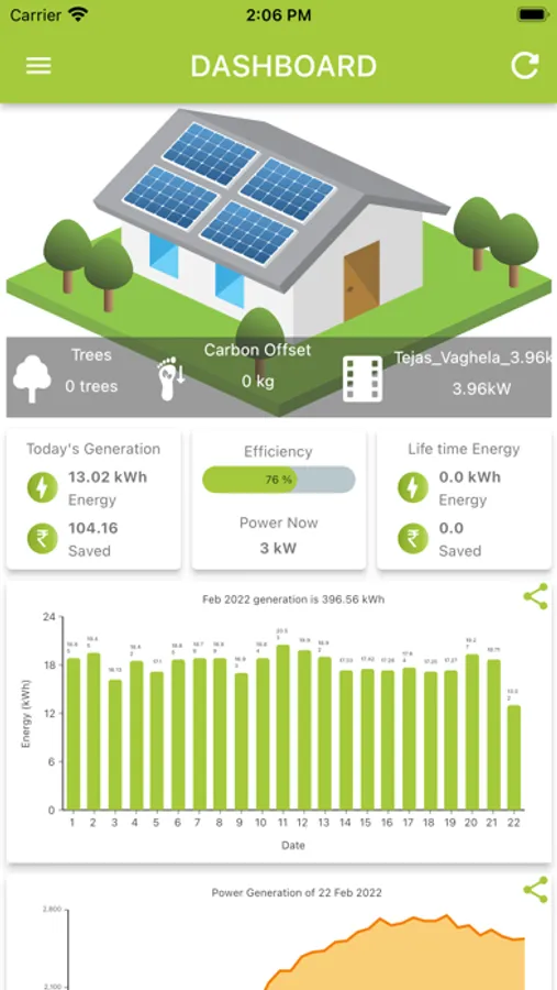 The application provides easy access to the user site to get the latest status and information. Users can also get all the information about the current energy and power generation, Site online/offline status, panel wise monitoring and be able to do a smart diagnostic.