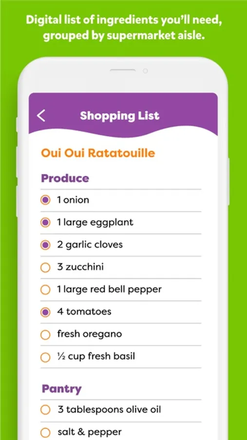 To get started, simply download the app, select the recipe you want to cook, and hold your phone over each step-by-step recipe photo in your monthly Kidstir cooking kit. The photo will come alive in a short, augmented-reality video so you can cook along every step of the way with us! Ready to get a head start on shopping? Access our handy, digital list of ingredients you’ll need to get started, grouped by supermarket aisle. Fun and yum!