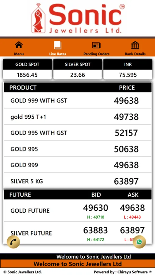 Our app shows the fastest updated LIVE RATES of gold.We serve our customers with dedication and commitment and provide the latest technology tools for an easy and instant order booking system.