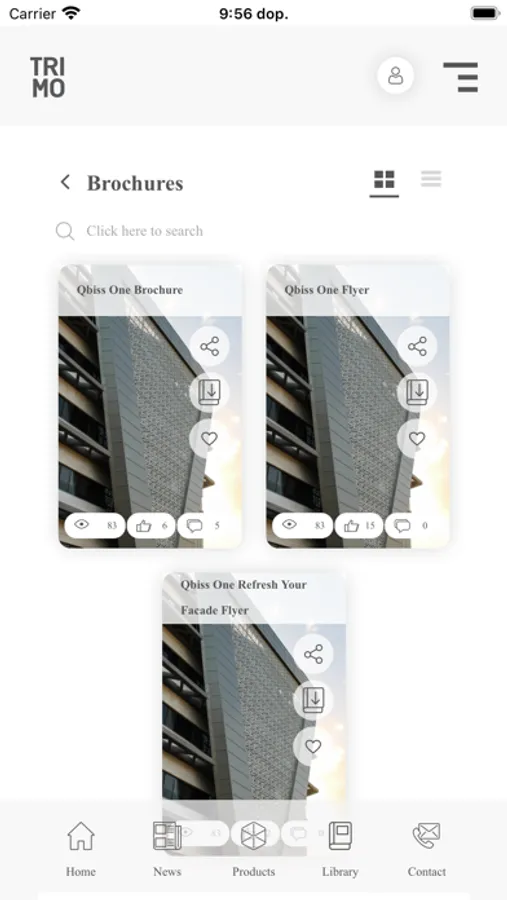 On-site, a Façade Installers, Designers, Architects, or Salespersons are often confronted with complex problems every day. To solve them, they need instant access to always correct detailed information, which is why the Trimo Library App is a comprehensive source of information for all target groups to search, find, read, stream, share and promote Trimo façade solutions.