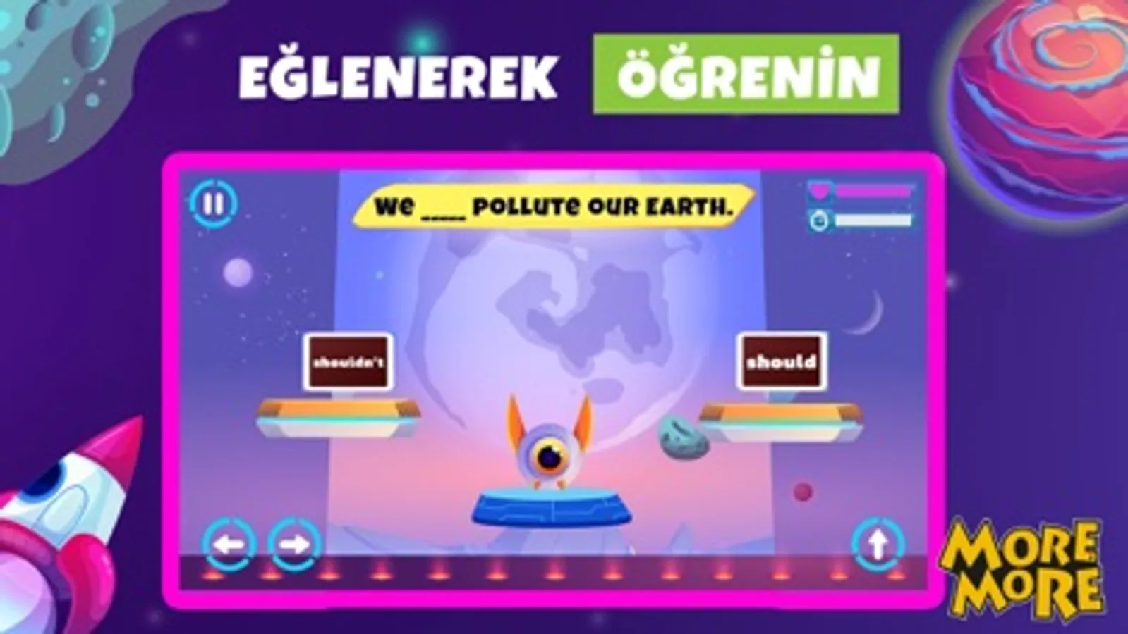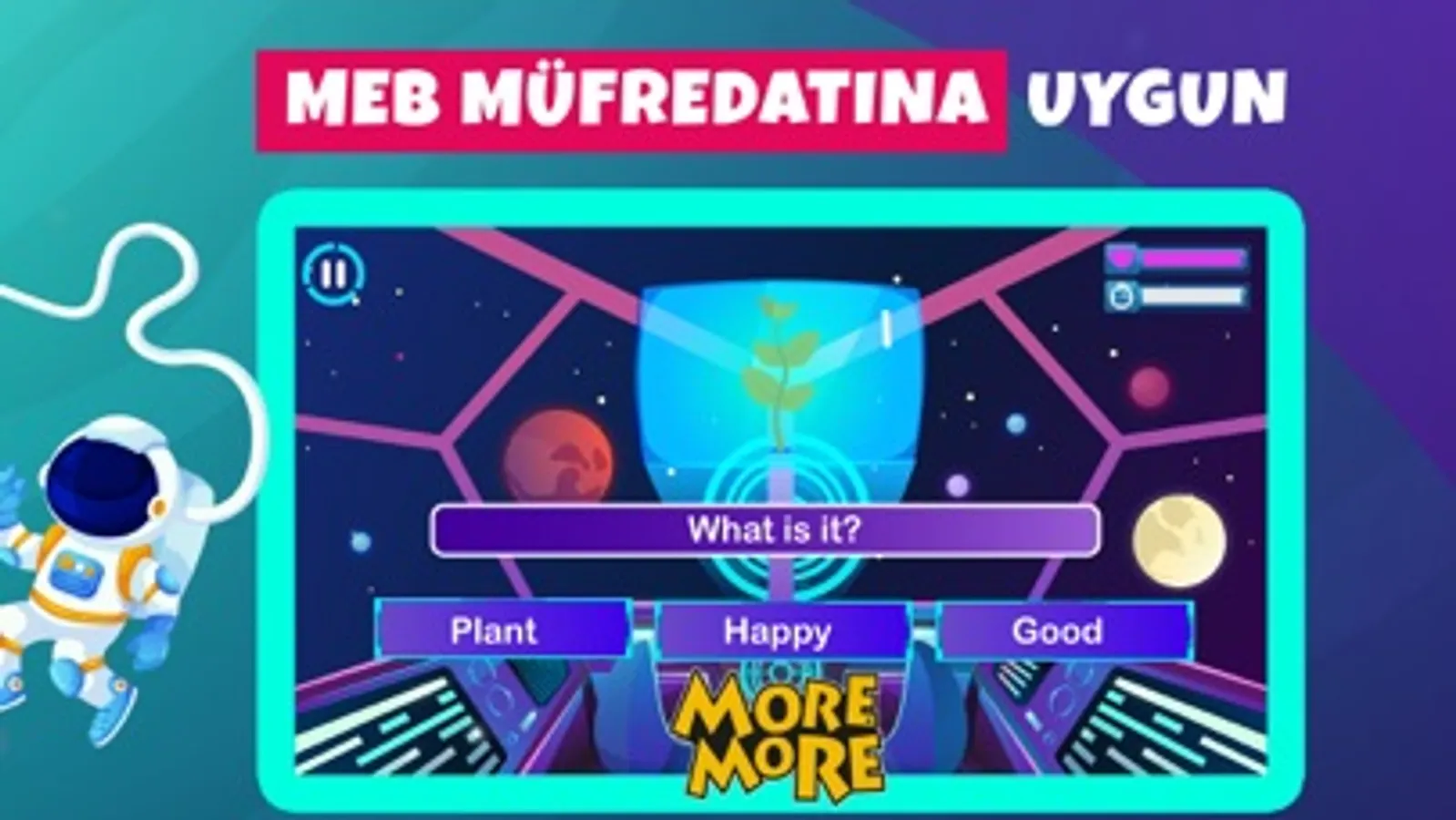 Play More 9. Sınıf Dijital Eğitim Platformu yıl boyunca çocuğunuzun elinizden düşmeyecek bir uygulama olacak. Yıl içerisinde yapılacak güncellemelerle birlikte 9. sınıflar için en iyi ingilizce uygulamasına şimdiden sahip olun. 100 adet oyuna sahip uygulamamız ile sıkılmadan bol tekrar yapacaksınız. Milli eğitim müfredatına tamamen uygun bu uygulama ile çocuğunuz İngilizceyi eğlenerek öğrenecek. Her yıl uygulamaya eklenecek sürprizlere hazır olun. İngilizce eğitiminde geliştirdiğimiz dijital oyun temelli yöntem ile çocuğunuz 4 beceriye (okuma, yazma, dinleme ve konuşma) göre kendini test edebilecek. Kurmay Yayınları için labla projesiyle geliştirilmiştir.