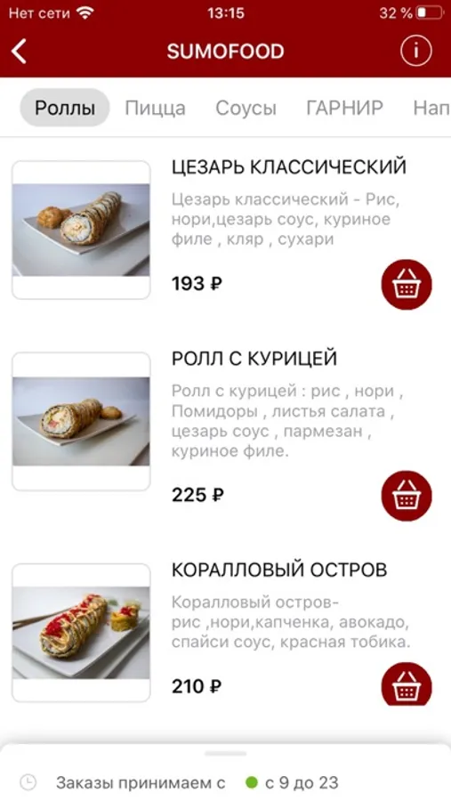 - Выбор блюд и кухонь: пицца, роллы, салаты, пироги, правильное питание, бургеры и многое другое;