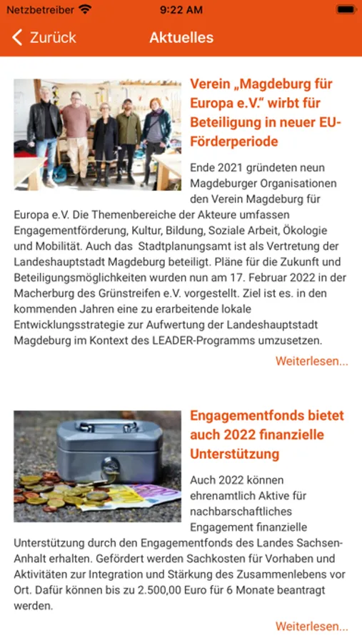 Die App ist die Kommunikationsplattform für Freiwillige, die sich bei Aktionen und in Projekten der Freiwilligenagentur Magdeburg engagieren (wollen). Engagierte können miteinander in Kontakt kommen, Fotos teilen und über ihre Erfahrungen berichten. Alle geplanten Vorhaben sind im Kalender aufgelistet und enthalten notwendige Informationen über Art, Zeit und Ort. Anmeldungen sind mit wenigen Klicks möglich. App-Nutzer*innen werden über Veränderungen und neue Aktionen fortlaufend informiert.
