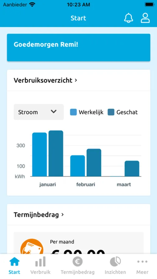 Je kan gemakkelijk zien en kiezen hoe veel je per maand betaalt. We geven een advies om je termijnbedrag aan te passen op basis van hoe veel energie je daadwerkelijk verbruikt. Zo proberen we bijvoorbeeld te voorkomen dat je veel moet bijbetalen bij de jaarafrekening.