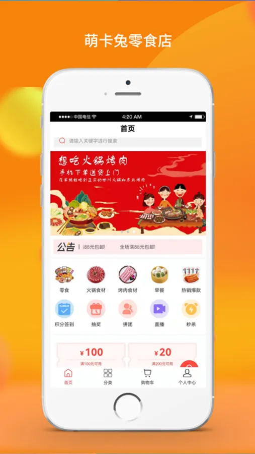 萌卡免APP 拥有上千种全球精选零食、火锅、烤肉、早餐四大系列产品,想吃什么手机下单同城配送1小时送上门。手机注册入会成为品牌会员,领取会员权益。还有丰富的秒杀产品,特卖拼团。每天帮您省钱!