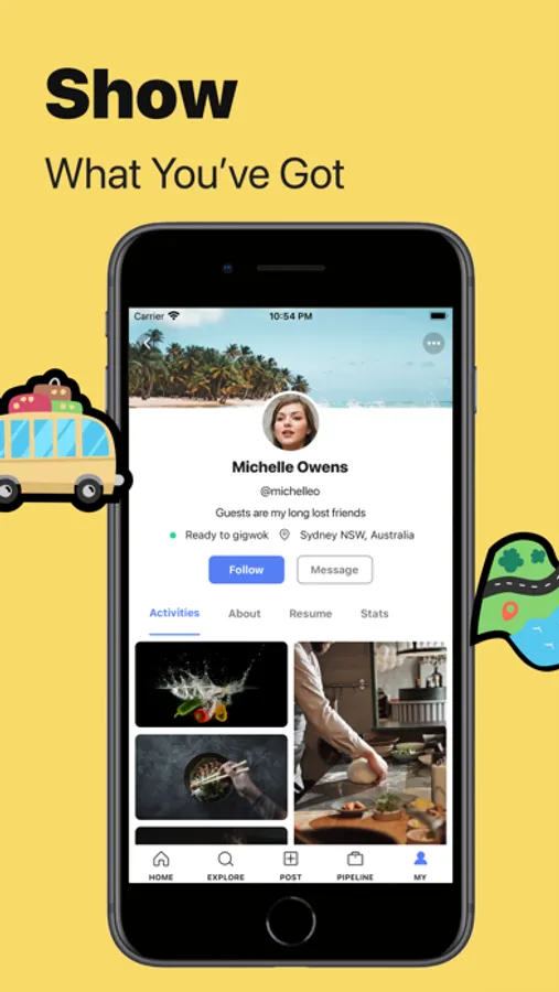 It’s simple to join the Gigwok community: get the app, create your profile, and answer 3 questions to start networking. You can further post content to stand out, add your experiences to be credible, and submit inquiries to interesting companies.