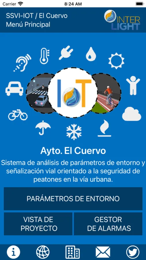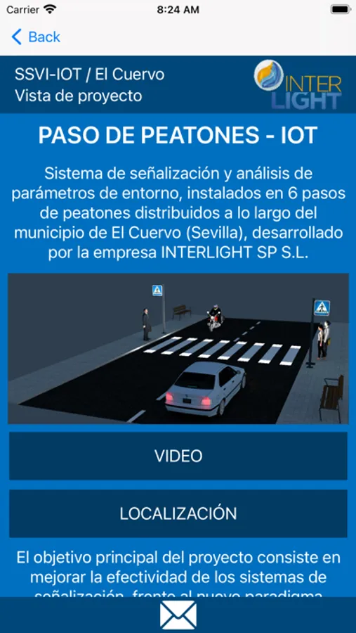 Sistema de señalización y análisis de parámetros de entorno, instalados en 6 pasos de peatones distribuidos a lo largo del municipio de El Cuervo (Sevilla), desarrollado por la empresa INTERLIGHT SP S.L.