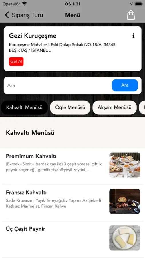 * Menümüzü inceleyin.