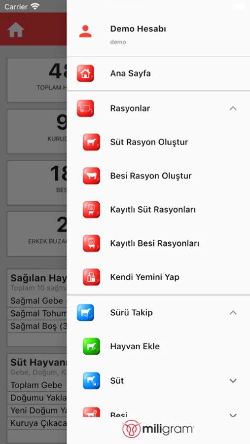 Uygulama sayesinde süt hayvanı, besi hayvanı rasyonları hazırlayabilir, fabrika yemini kendiniz yapabilirsiniz.