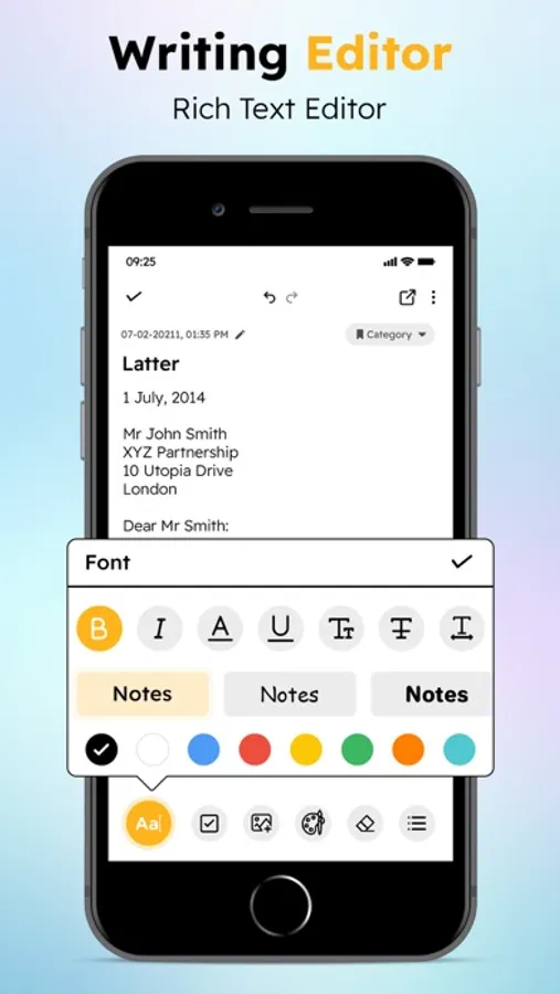 * Five kinds of notes background color available to change, make your notes in personalized way.