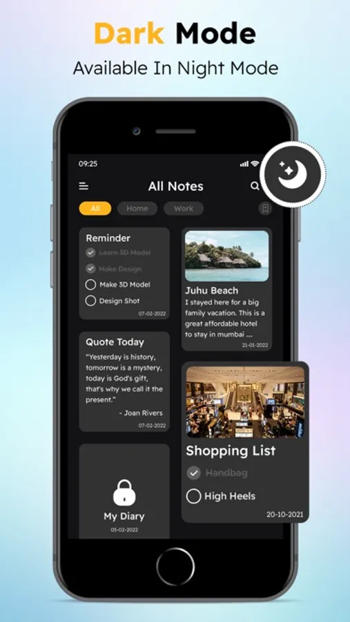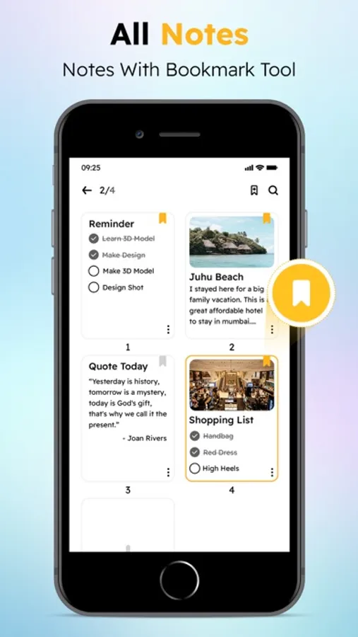 Take notes, view notes, and check note status with this good notes app. Display notes in list or grid mode. Pin the key notes at the top is also available in this notes writer.