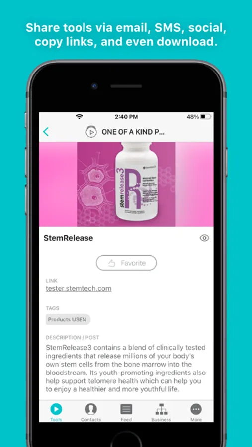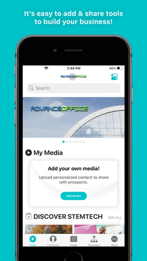 With the Stemtech ADVANCEOFFICE app, you can easily share your way to success with tools that create word-of-mouth buzz and complement belly-to-belly efforts! Connect with new contacts and interact with your team by sharing exclusive, corporate-approved tools. You’ll have a vast array of marketing materials like videos, images, and more—all right at your fingertips! The powerful, yet beautifully simple design, along with compelling tools, makes growing your business simpler than ever.