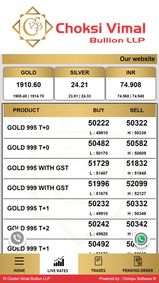 Our app shows the fastest updated LIVE RATES of gold.