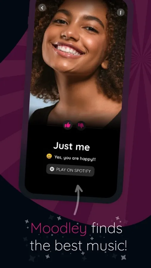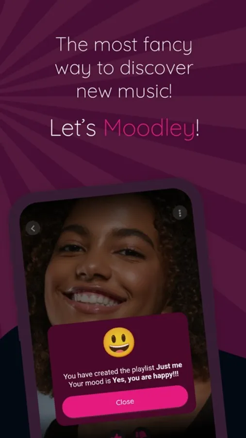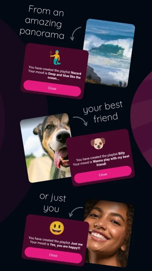 From an amazing panorama, your lovely dog or your smile, Moodley will find the best music.