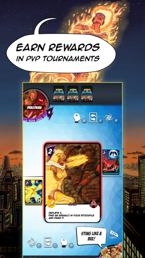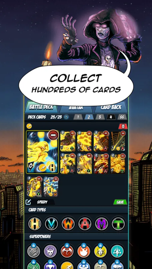 This is a deck battle card game like you’ve never experienced before – Your card deck is both your power and your life, so make it uniquely yours. Want to be a power armored hero or a dark magic wielding villain? You choose! With over 600 power cards to collect in this CCG, you’ll never run out of new combinations to try. Unlock cards from an expanding roster of 20 superpower types to match your character vision and play style.