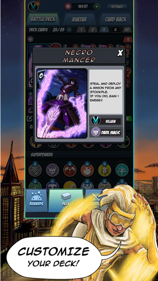 -BUILD YOUR OWN SUPERHERO...combine up to 3 superpower sets in your deck. Each superpower features cards with thematic mechanics and synergies. For example, Super Speed is a tempo deck that feels speedy, while Dark Magic focuses on discard and reanimation.