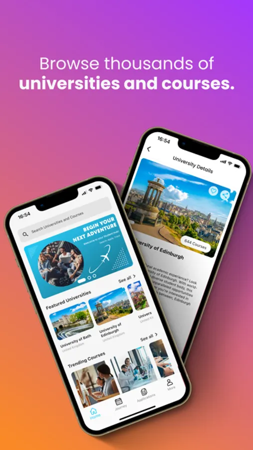 Search thousands of institutions and programmes around the world, and discover more about facilities, requirements and more. Create an account, upload your documents and apply with one simple click.