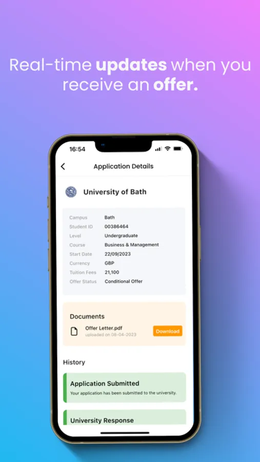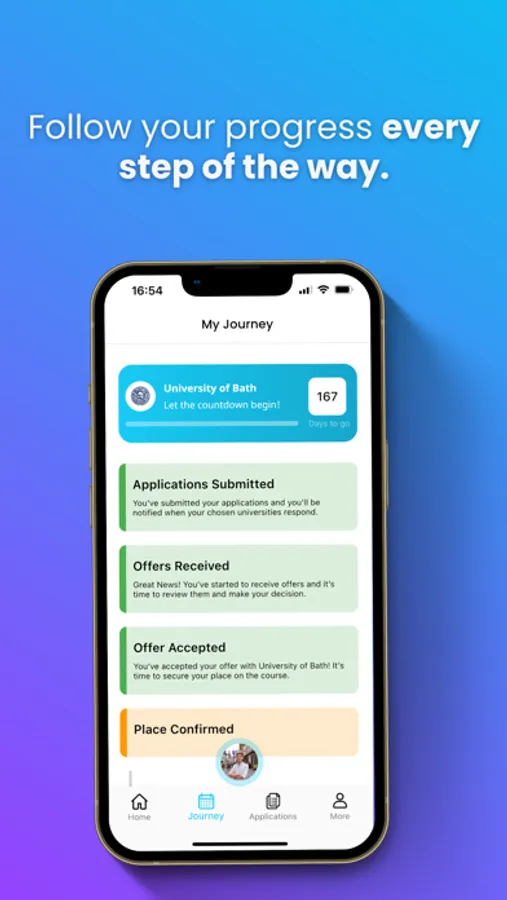 View your progress on your personal timeline and track your individual university applications with the option to view/download offers and e-sign documents. You’ll even be notified as soon as one of your chosen institutions responds. After accepting an offer, you’ll initiate your countdown, letting you know how many days are left until you start your course.
